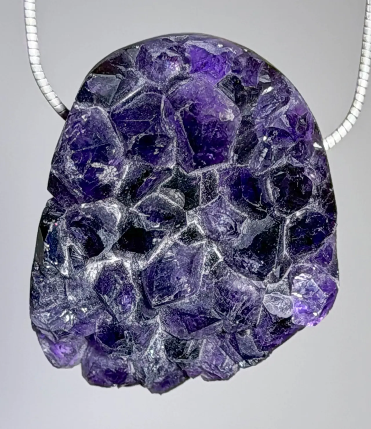 Du erhältst den abgebildeten Amethystdrusen-Anhänger – ein Einzelstück mit natürlicher Ausstrahlung.