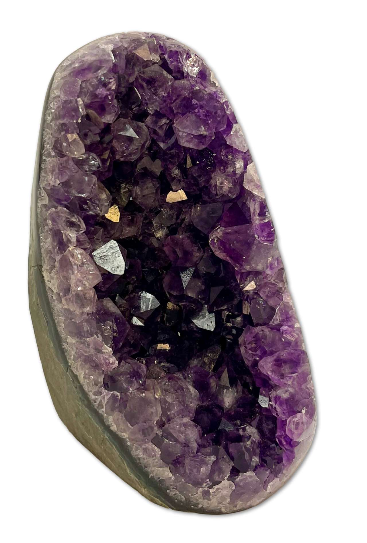Gewicht der Amethystdruse: 575g Herkunft: Uruguay Die Amethyst Drusen aus Uruguay haben eine besonders intensive Farbe. Alle unsere Amethystdrusen haben einen polierten Rand und von höchster Qualität.