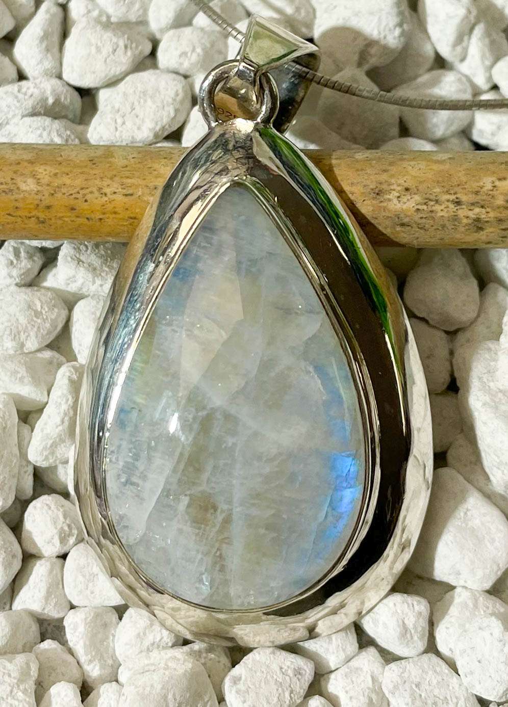 Edelstein Silber Anhänger aus Mondstein - Regenbogenmondstein mit einem passenden Stoffband.