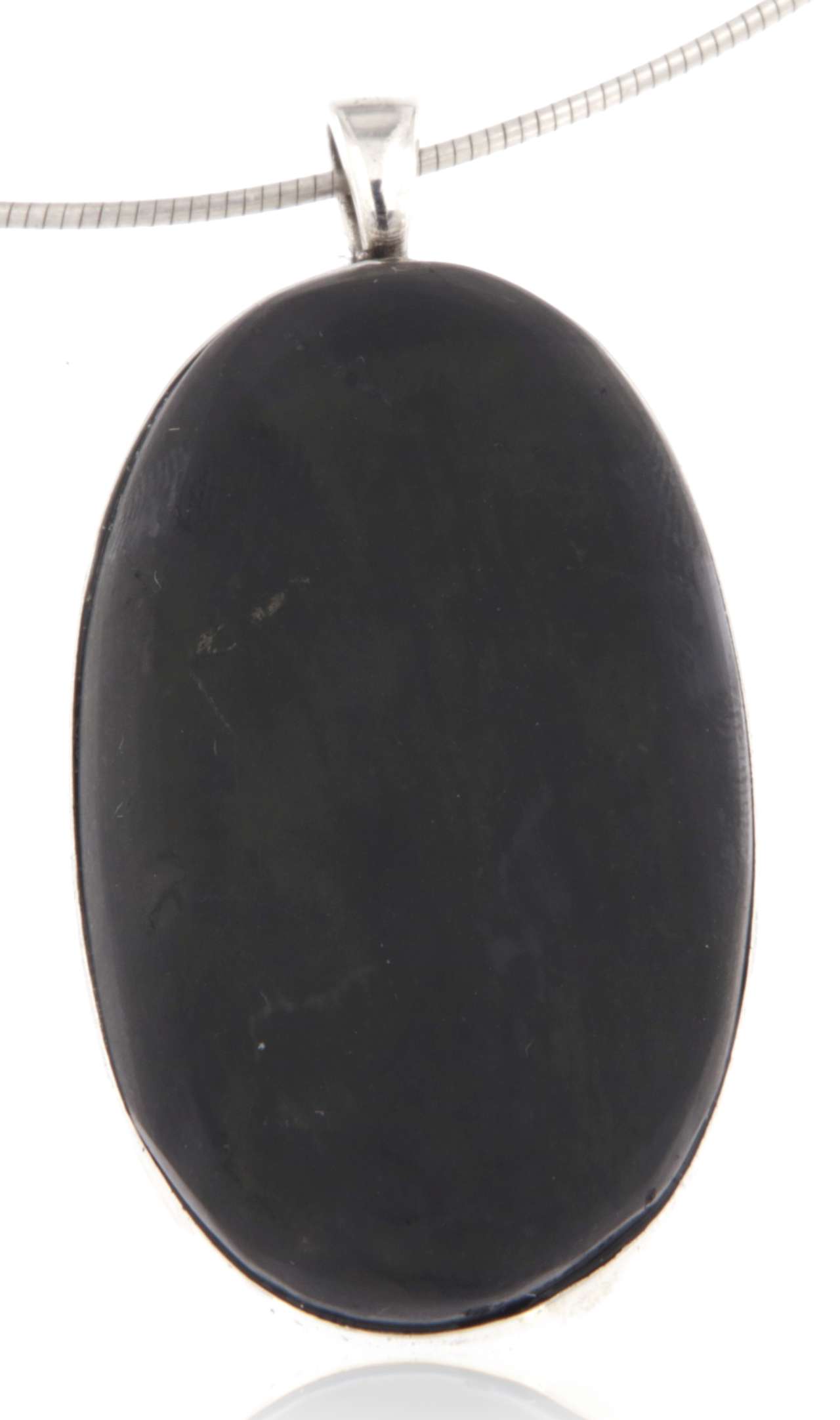 Edelstein 935er Silber Anhänger aus Schungit mit einem passenden Stoffband.
