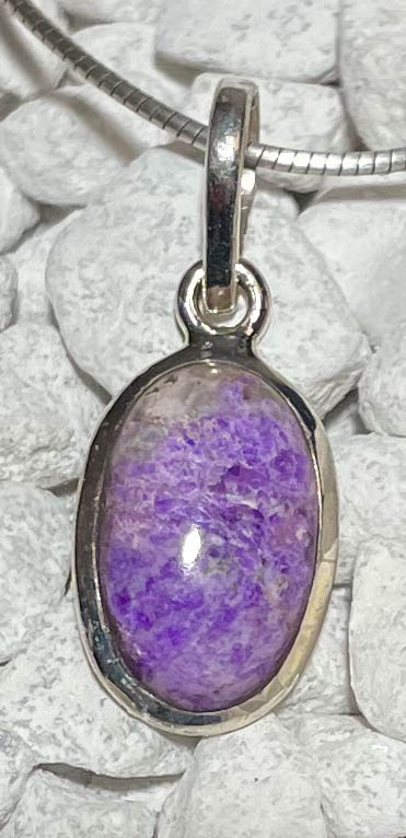 Edelstein Silber Anhänger aus Sugilith mit einem passenden Stoffband.