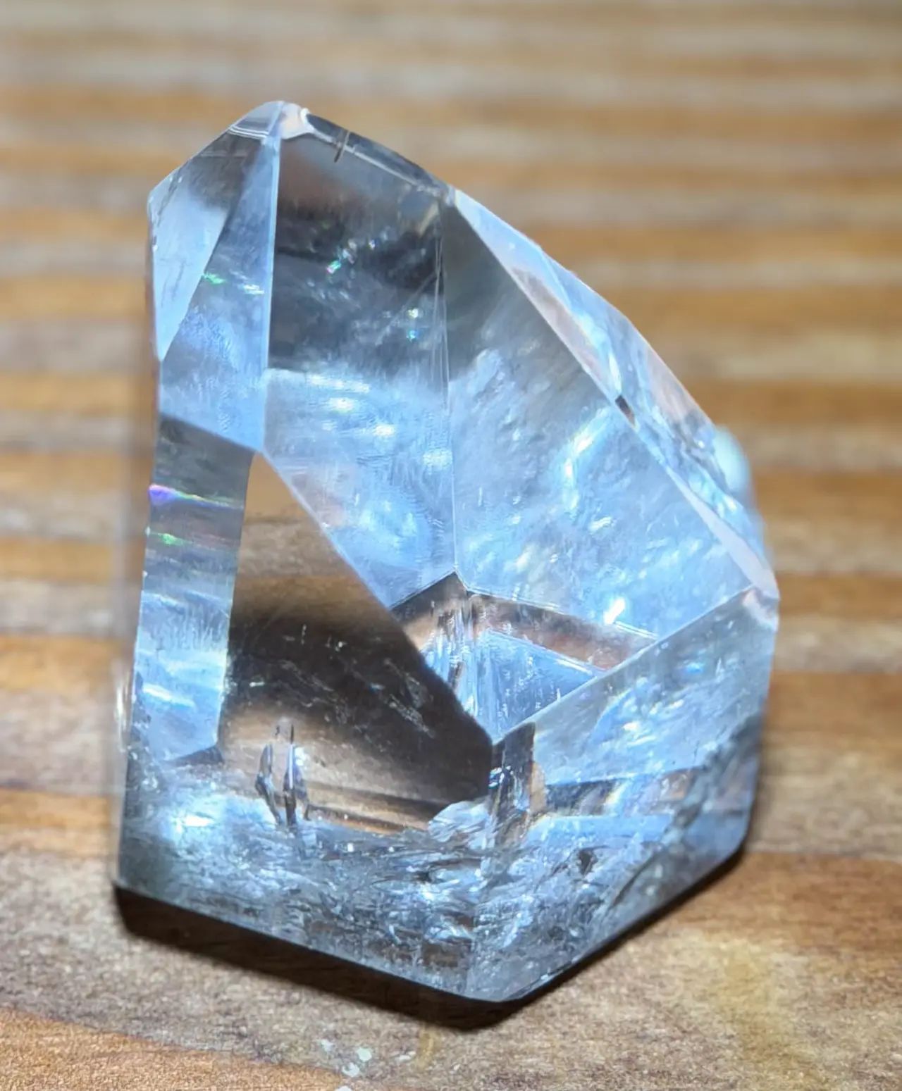 Die Spitze wurde präzise geschliffen und aufwendig poliert, sodass ihre kristalline Struktur optimal zur Geltung kommt. Lichtreflexe, natürliche Einschlüsse und das Transparenzspiel verleihen diesem Stück eine besondere Lebendigkeit – jedes Detail macht die Spitze zu einem echten Einzelstück der Natur.