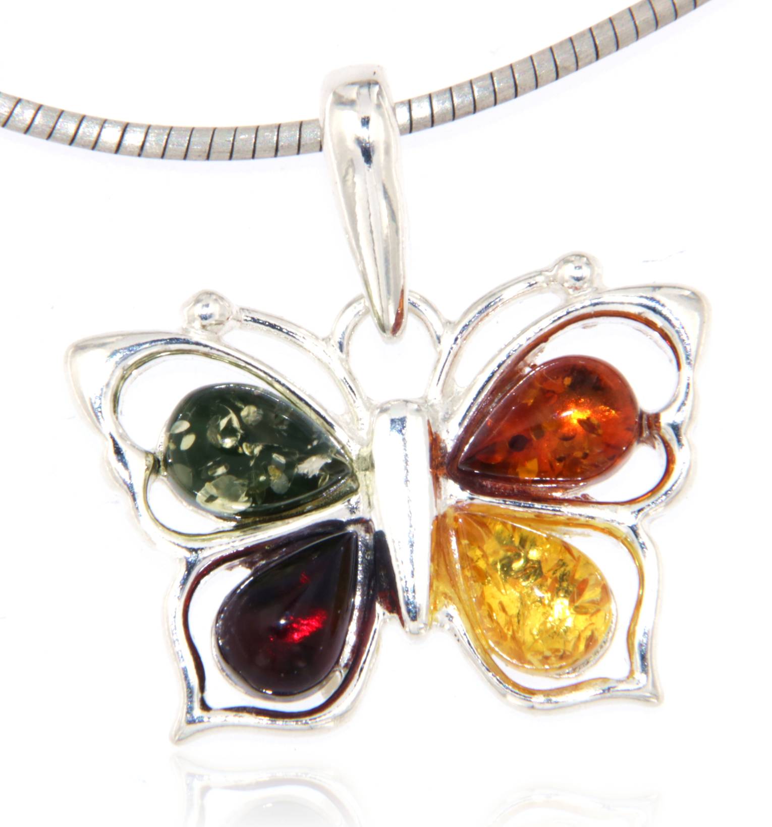 Edler Schmetterling Anhänger mit Bernstein und 925er Silber