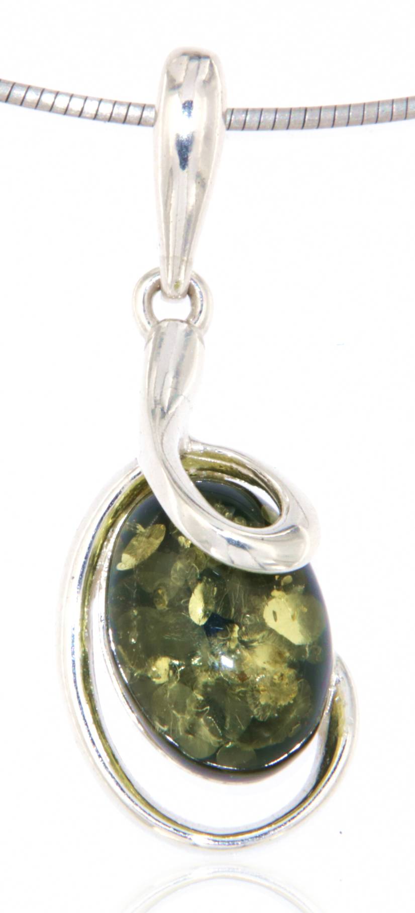 edler Anhänger mit grünem Bernstein - 925er Silber