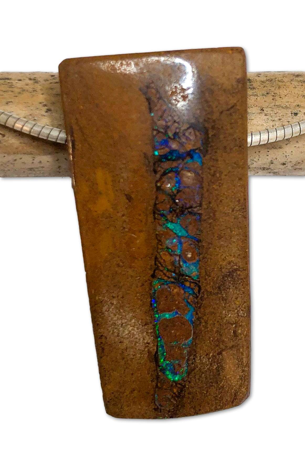 Edelstein Anhänger aus Boulder Opal mit einem passenden Stoffband.