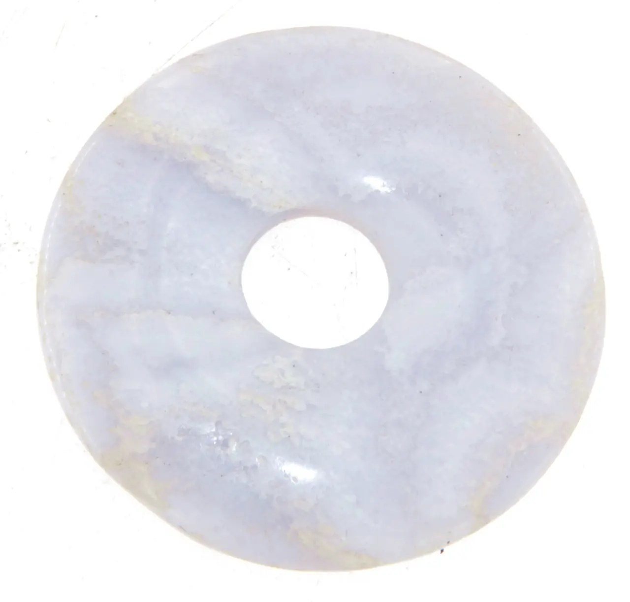 Die klassische Donutform (Pi-Scheibe) symbolisiert Harmonie, Ausgeglichenheit und Vollkommenheit. In Kombination mit der ruhigen, klaren Farbwirkung des Chalcedons entsteht ein stilvoller Energie-Donut, der Natürlichkeit und zeitlose Eleganz vereint.