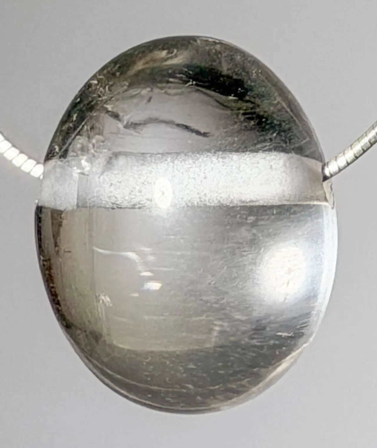 Die Bohrung von ca. 2,5 mm eignet sich ideal für Lederbänder, Omegareife oder feine Silberketten.