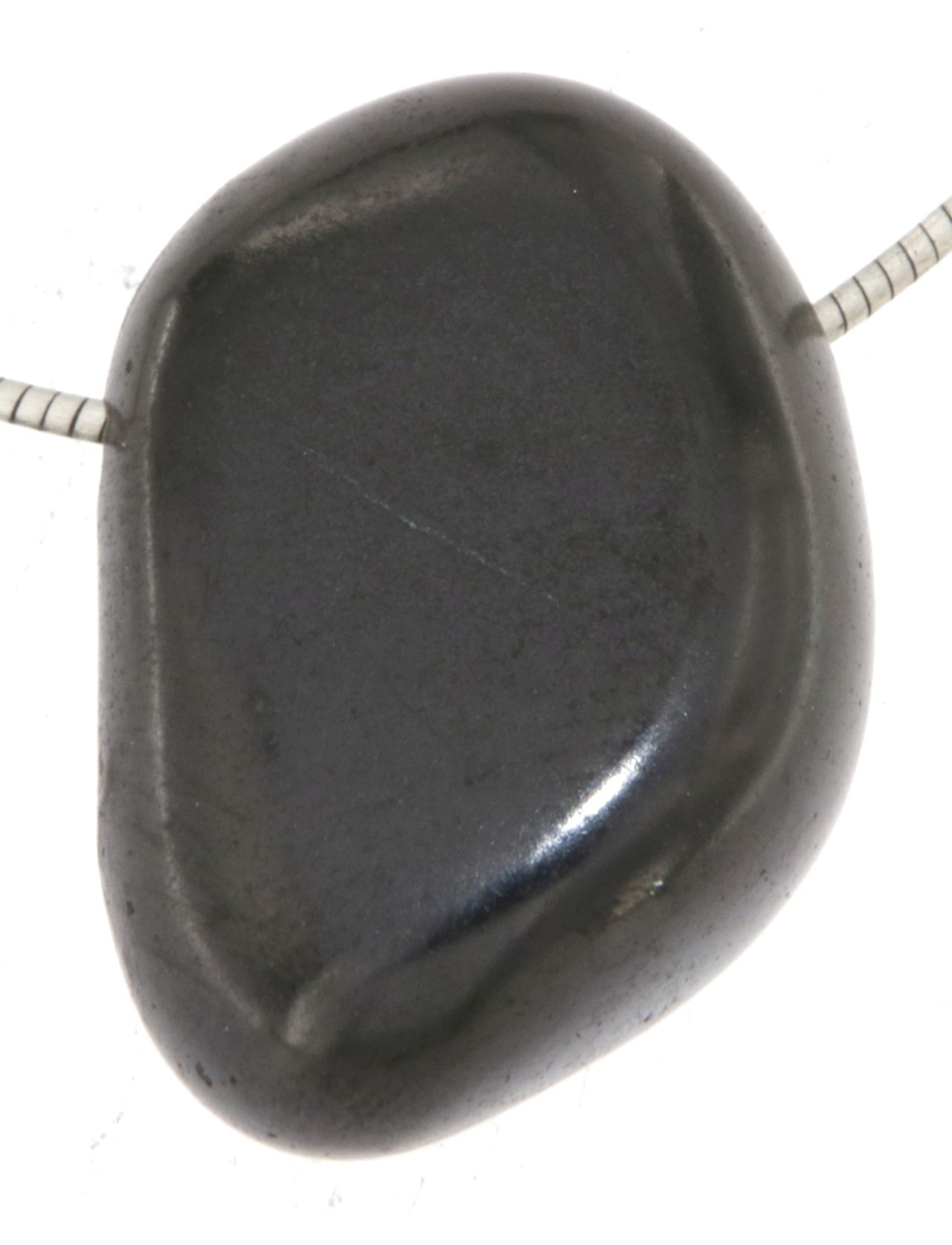 Edelstein Schmuck Anhänger aus Schungit mit einem passenden Stoffband.