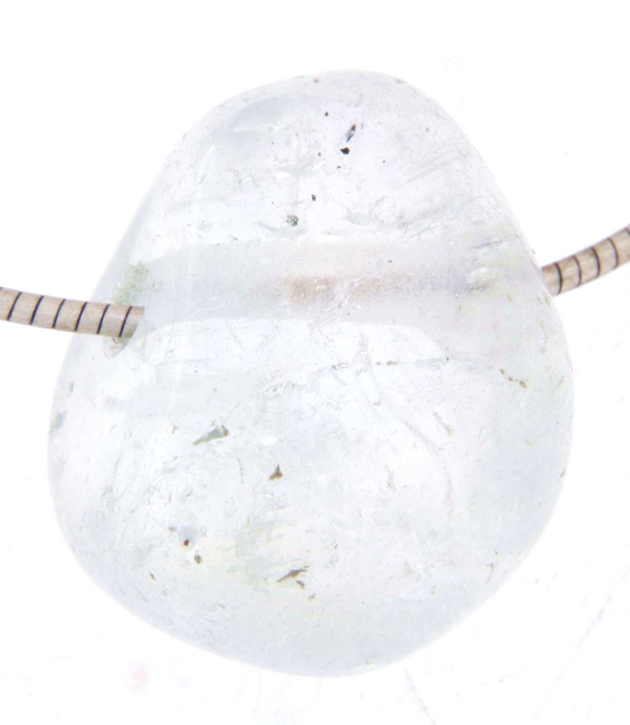 Edelstein Schmuck Anhänger Trommelstein blauer Topas unbehandelt mit einem passenden Stoffband.