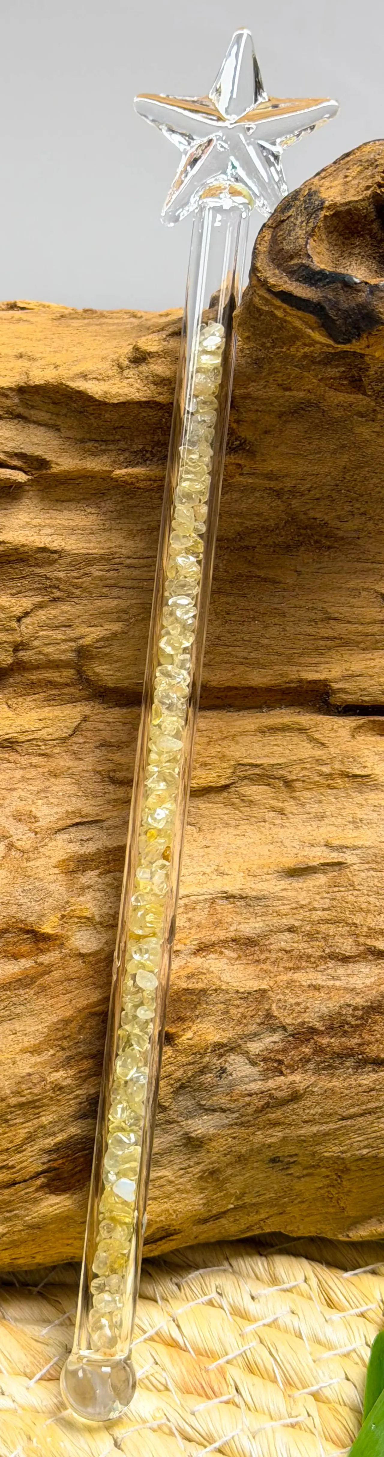 Der Premium Vital Crystal Water Stick – Citrin Stern ist eine elegante und wirkungsvolle Möglichkeit, Ihr Trinkwasser mit der vitalisierenden Energie der Kristalle zu bereichern. Jeder Stab ist mit natürlichen, polierten Citrin-Steinen gefüllt und besticht durch sein edles Design mit dem eingravierten Stern-Symbol, das Licht, Kraft und Harmonie symbolisiert.