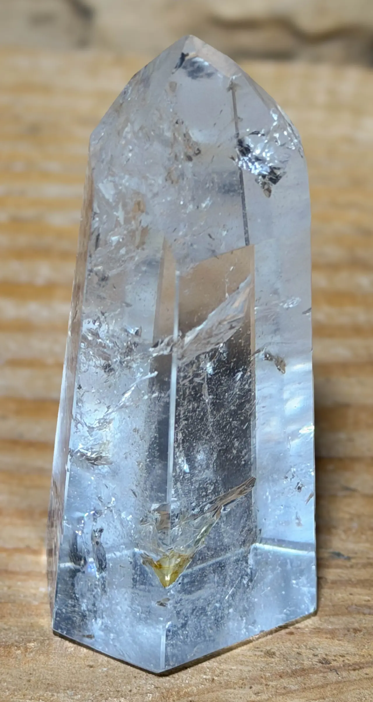Die Spitze wurde präzise geschliffen und aufwendig poliert, sodass ihre kristalline Struktur optimal zur Geltung kommt. Lichtreflexe, natürliche Einschlüsse und das Transparenzspiel verleihen diesem Stück eine besondere Lebendigkeit – jedes Detail macht die Spitze zu einem echten Einzelstück der Natur.