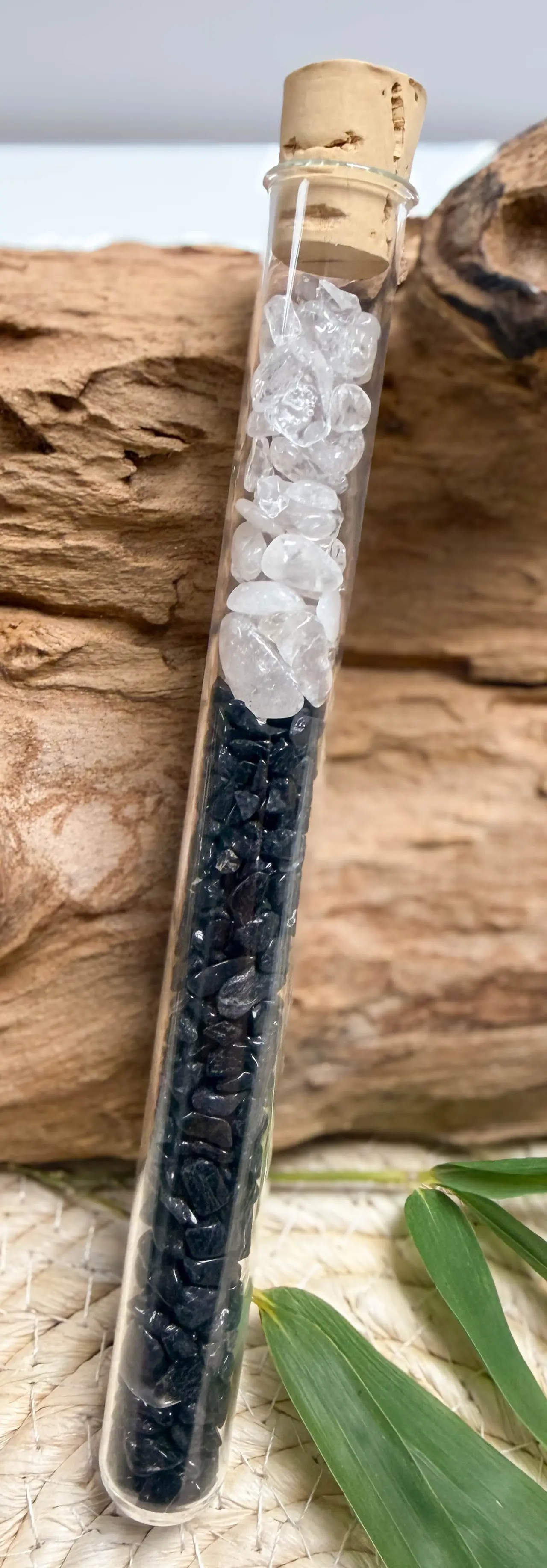 Das mit Edelsteinen gefüllte Glasröhrchen wird einfach in einen Glaskrug oder ein Trinkgefäß gestellt – ohne direkten Kontakt der Steine mit dem Wasser. Nach etwa 12 Stunden ist das Wasser energetisiert und trinkfertig. Diese Methode eignet sich hervorragend für poröse oder empfindliche Steine, die nicht direkt ins Wasser gelegt werden sollten.