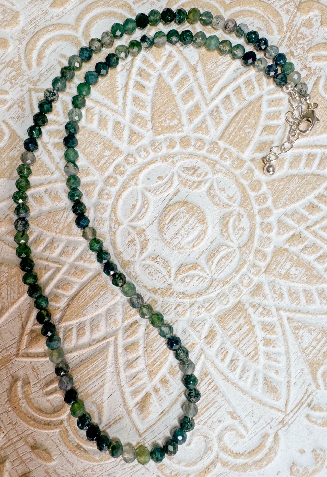 Edelstein-Collier aus Moosachat – handgefertigt mit 925er Silber