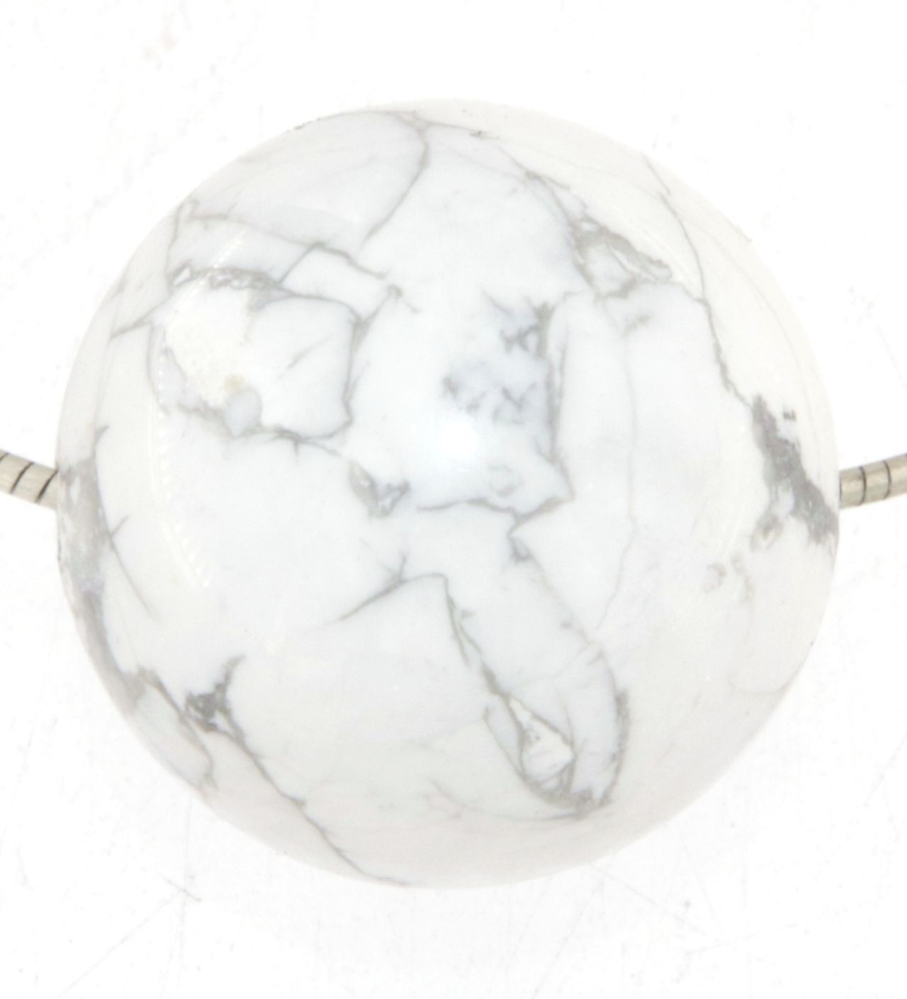 Edelstein Kugel Anhänger aus Magnesit mit einem passenden Stoffband.