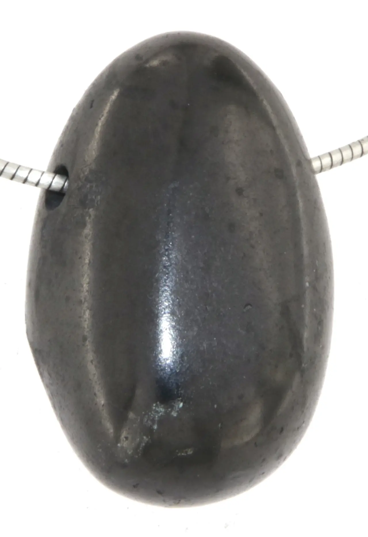 Edelsteinanhänger aus Schungit mit einem passenden Stoffband.