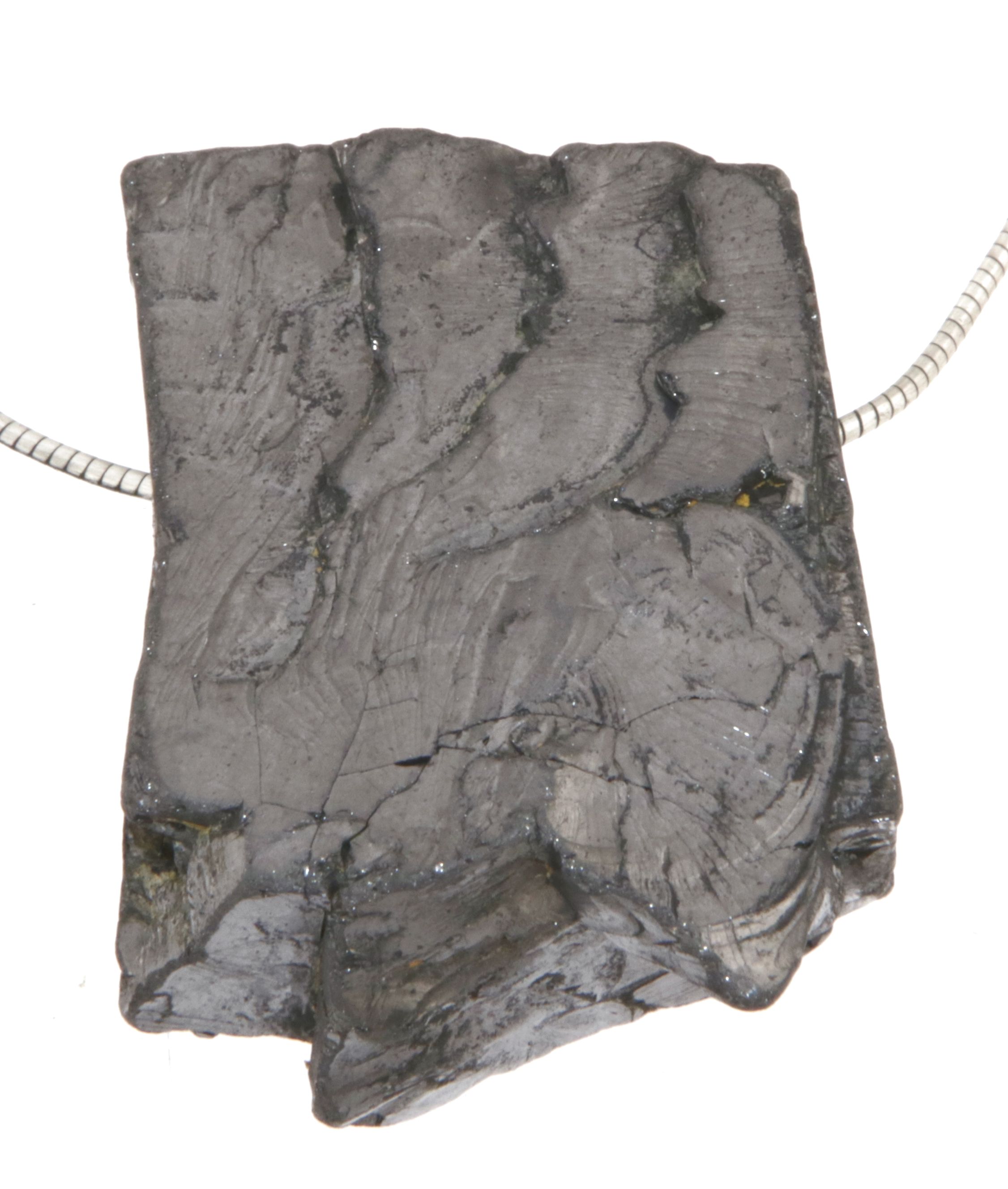 Edelstein Anhänger aus Edelschungit mit einem passenden Stoffband.