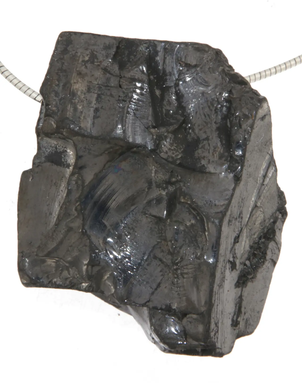 Ein edler Edelsteinanhänger aus echtem Edelschungit (auch Elite-Schungit oder Elite Shungite genannt) – handverarbeitet, sorgfältig geschliffen und poliert, um den charakteristischen metallischen Glanz dieses seltenen Natursteins hervorzuheben.
