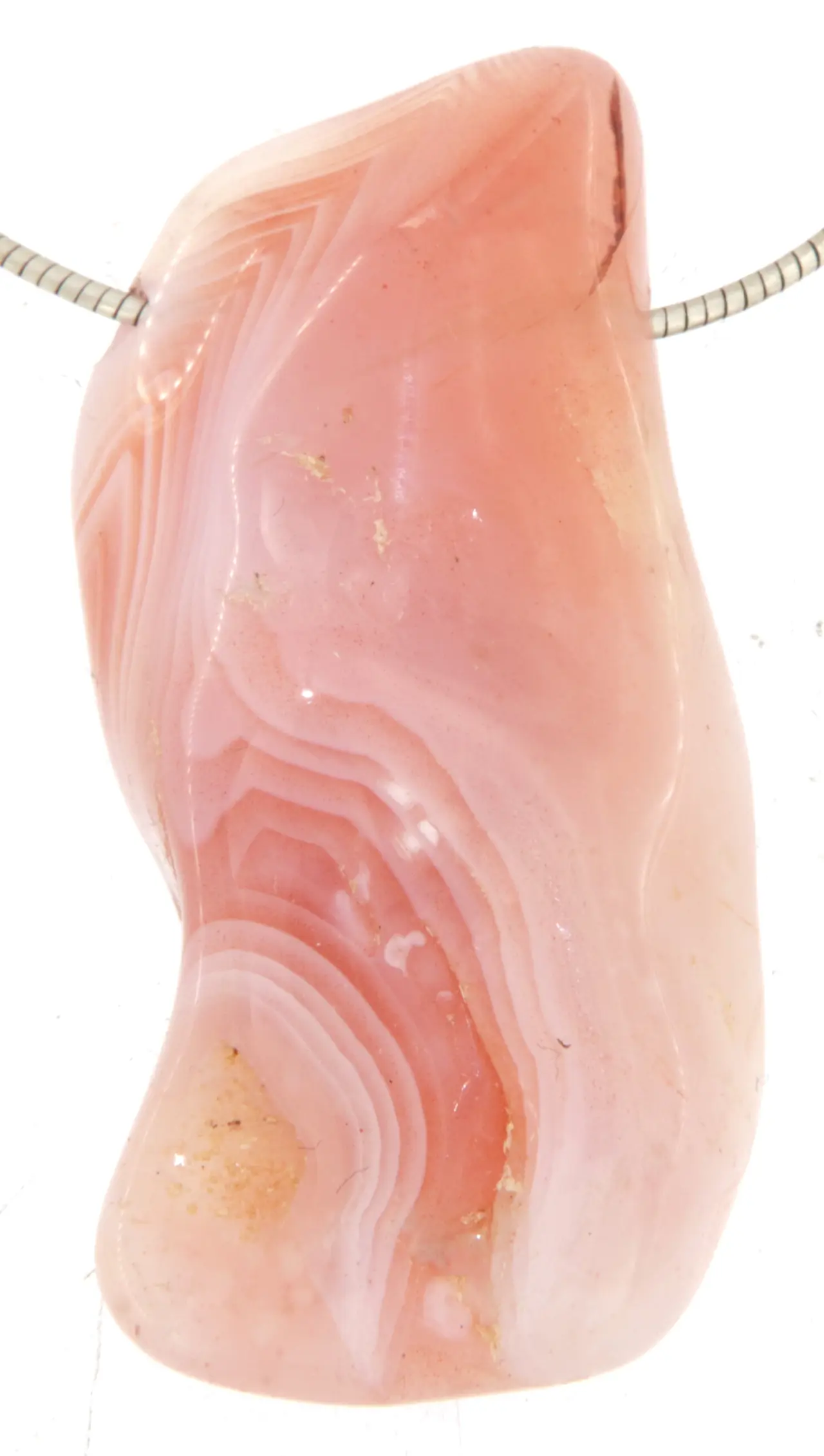 Edelstein Trommelstein Anhänger aus Aprikosenachat - Achat mit einem passenden Stoffband.