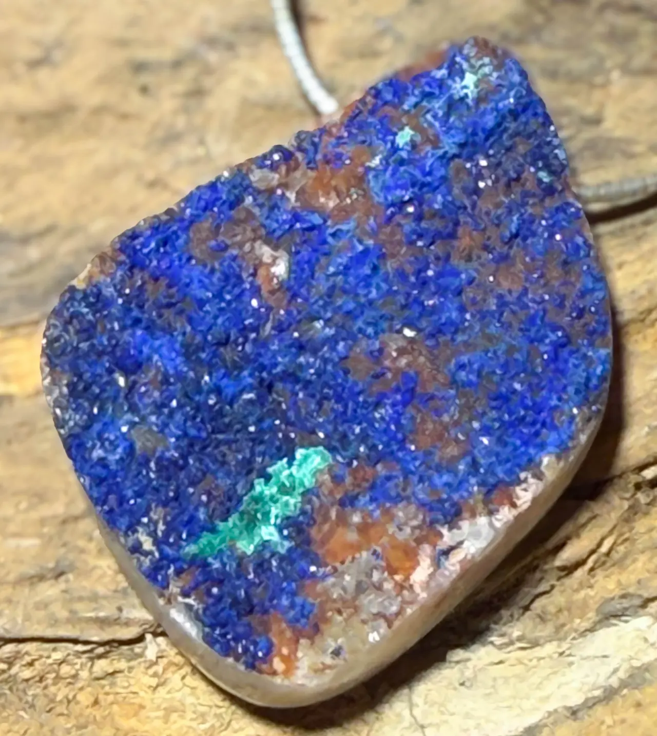 Edelstein-Trommelstein-Anhänger aus Azurit – inkl. Stoffband