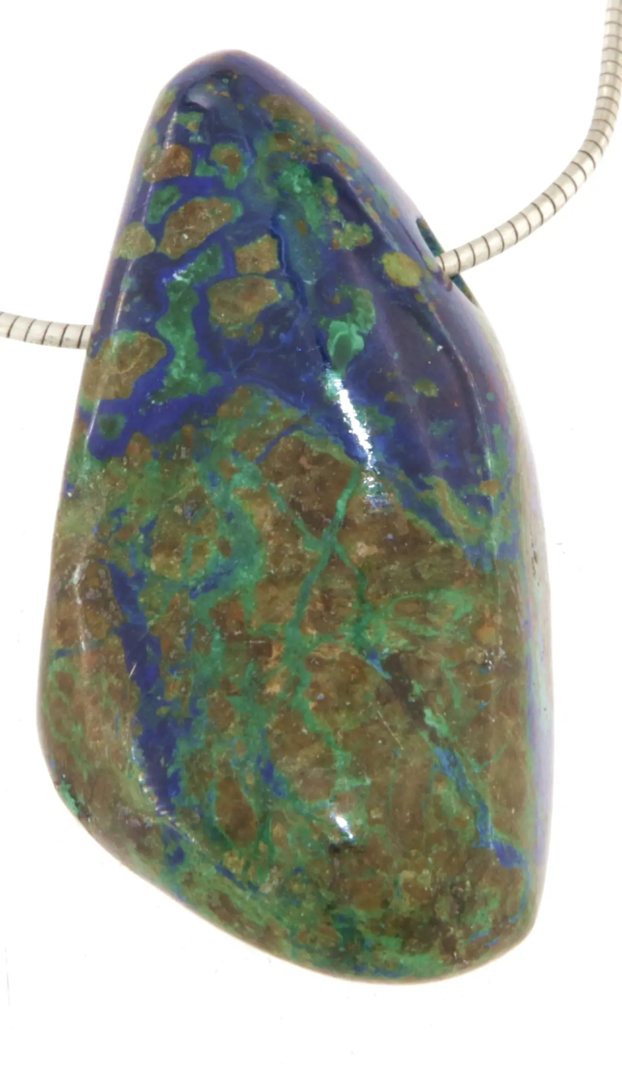 Tauchen Sie ein in die faszinierende Welt des Azurit-Malachit – einer einzigartigen Verbindung zweier Edelsteine, die durch ihr intensives Farbspiel und ihre natürliche Struktur verzaubern. Das tiefe Blau des Azurits und das lebendige Grün des Malachits verschmelzen zu einem harmonischen Kunstwerk der Natur – jeder Anhänger ist ein echtes Unikat.