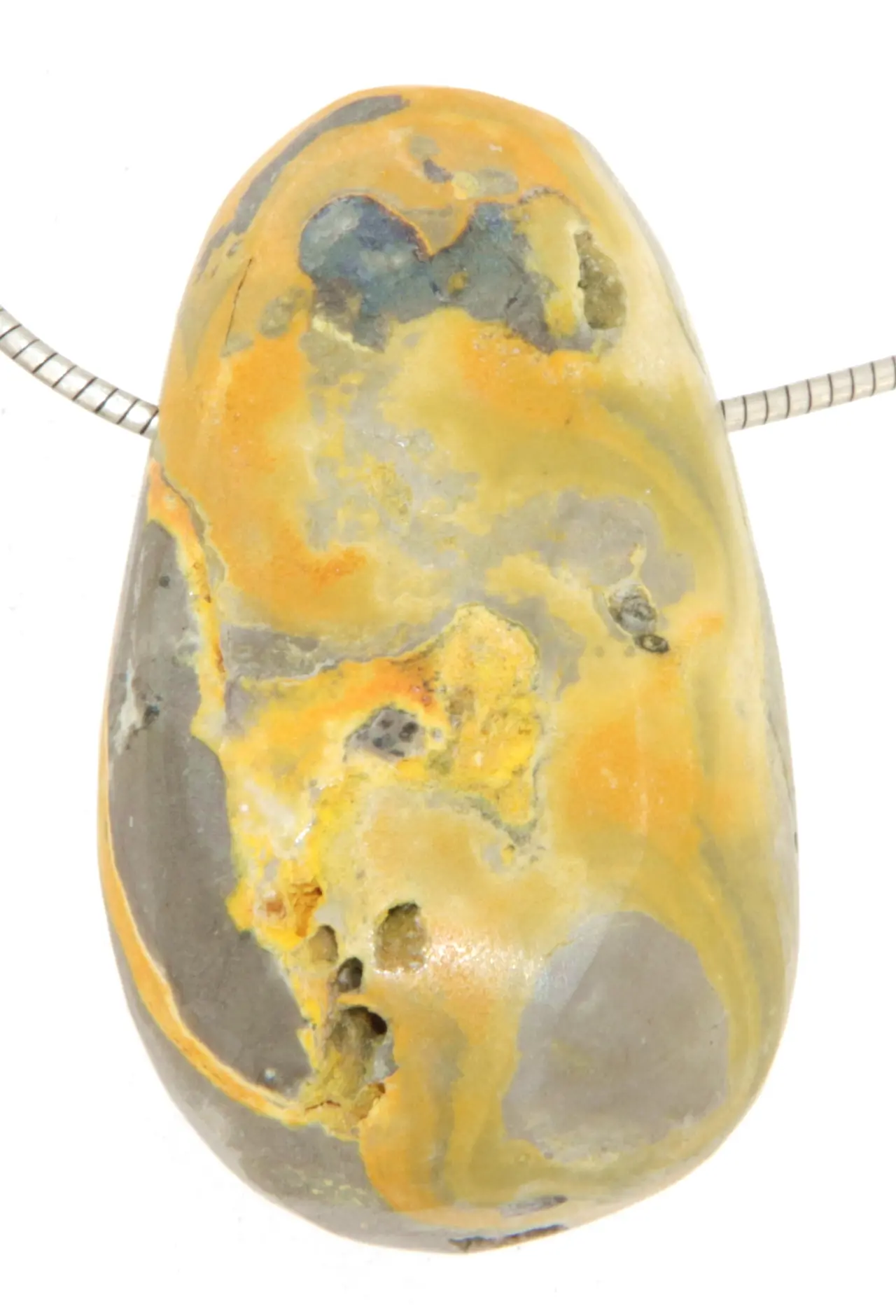 Ein ausdrucksstarker Trommelstein-Anhänger aus Eclipse, auch bekannt als Bumble Bee Stein, der durch seine leuchtenden Farben und markante Maserung begeistert.