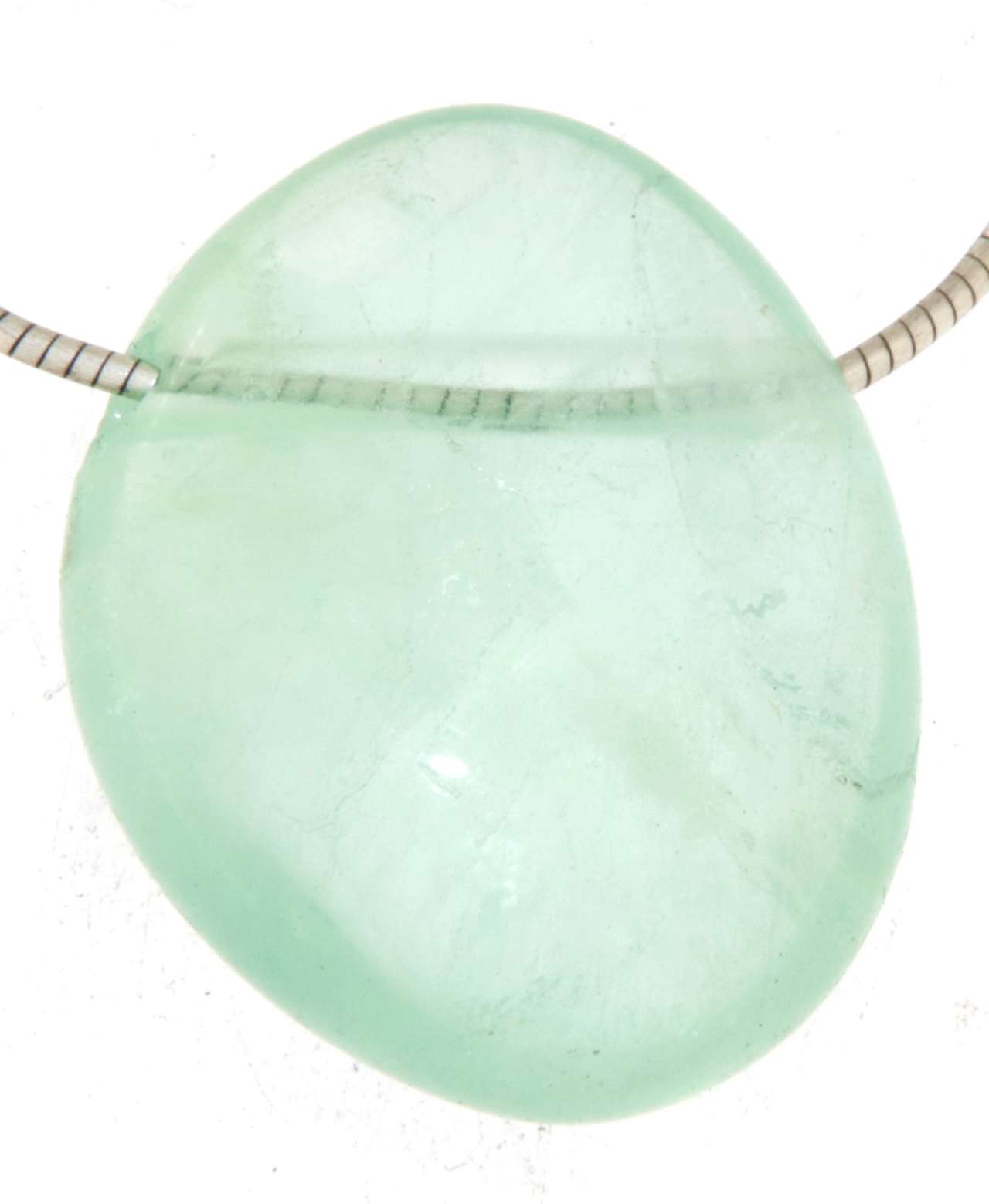 Edelstein Anhänger - Trommelstein aus grüner Fluorit mit einem passenden Stoffband.