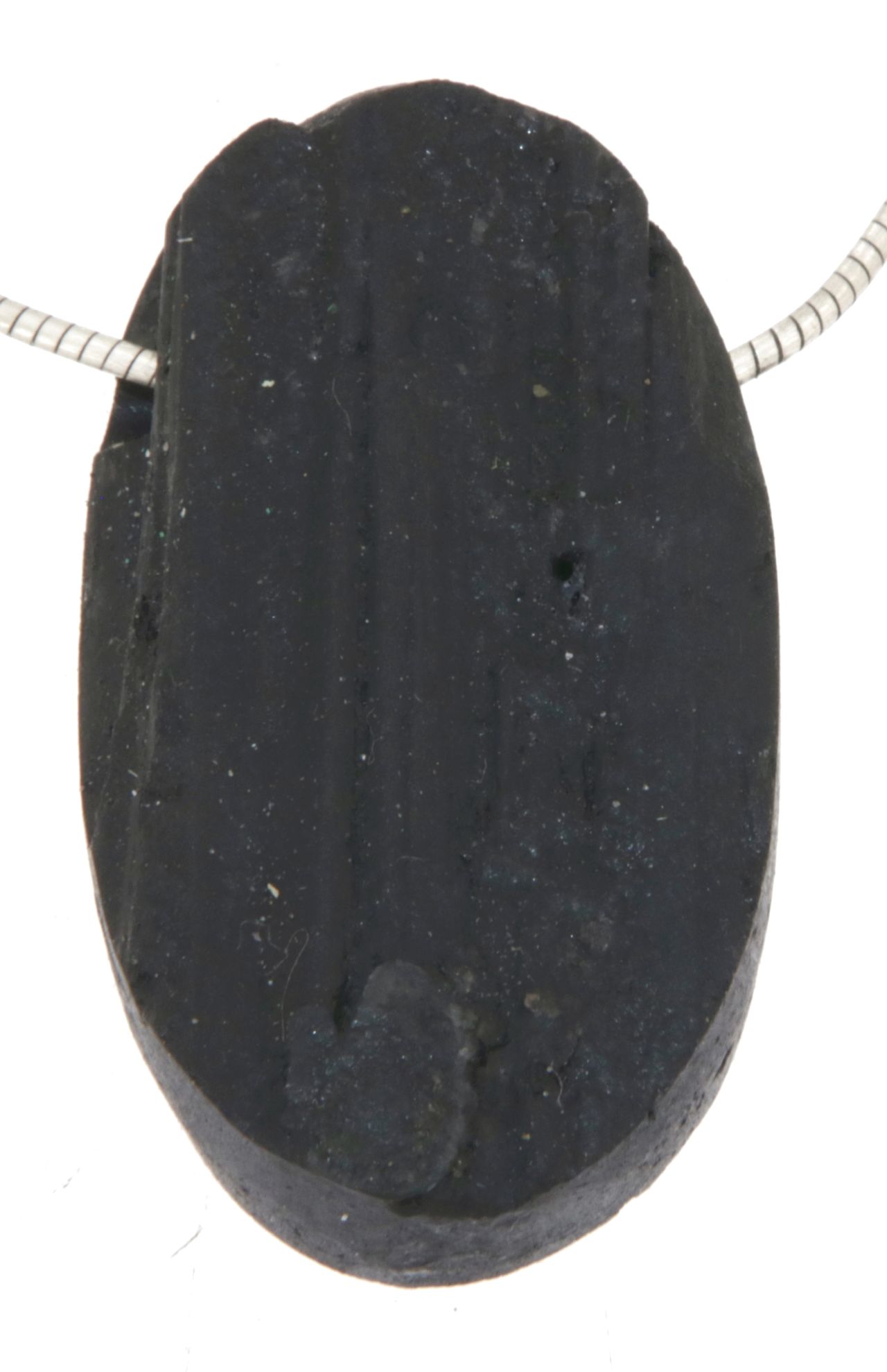 Edelstein Schmuck Anhänger Trommelstein aus schwarzer Turmalin - Schörl mit einem passenden Stoffband.