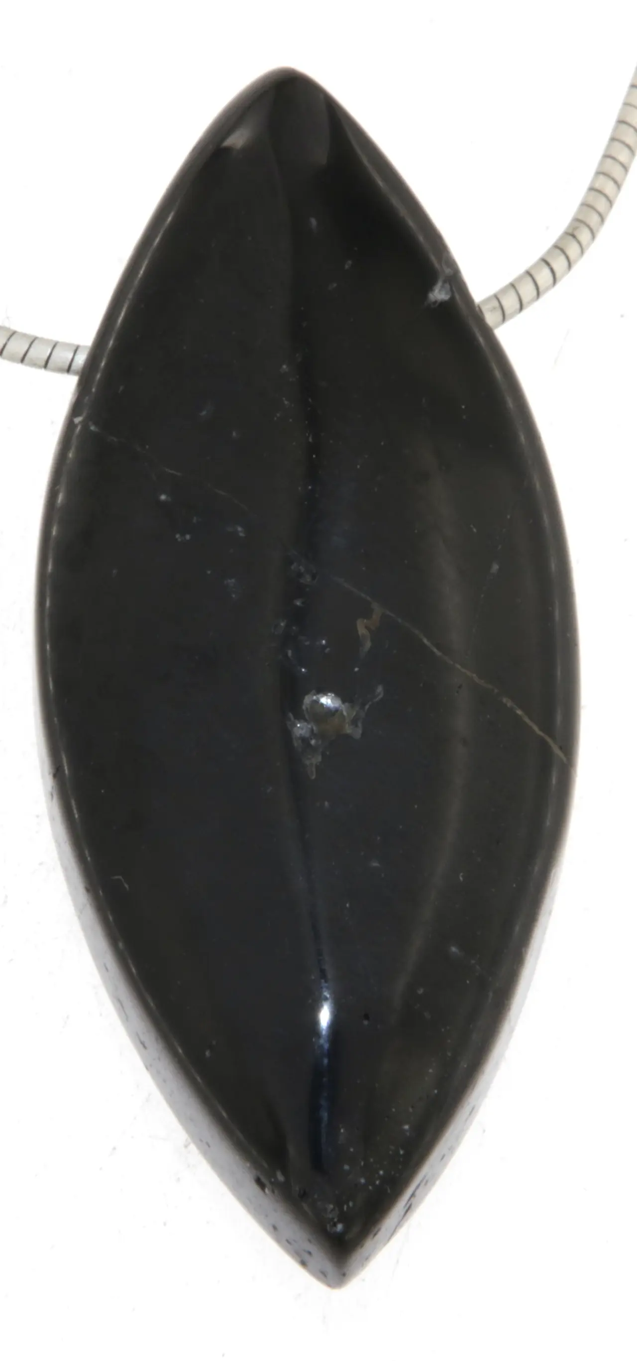 Ein außergewöhnlich schöner Edelsteinanhänger aus schwarzem Turmalin (Schörl), in fein geschliffener Navetteform und hochwertig polierter Ausführung. Der tiefschwarze Stein mit seinem seidigen Glanz steht für Schutz, Stabilität und innere Stärke. Seine elegante, natürliche Erscheinung macht jeden Anhänger zu einem einzigartigen Unikat der Natur.