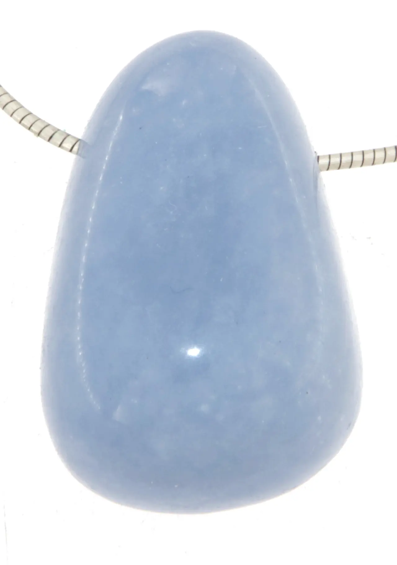 Du erhältst den abgebildeten Angelit-Anhänger – ein handpoliertes Schmuckstück mit natürlicher Farbwirkung und dezentem Glanz.