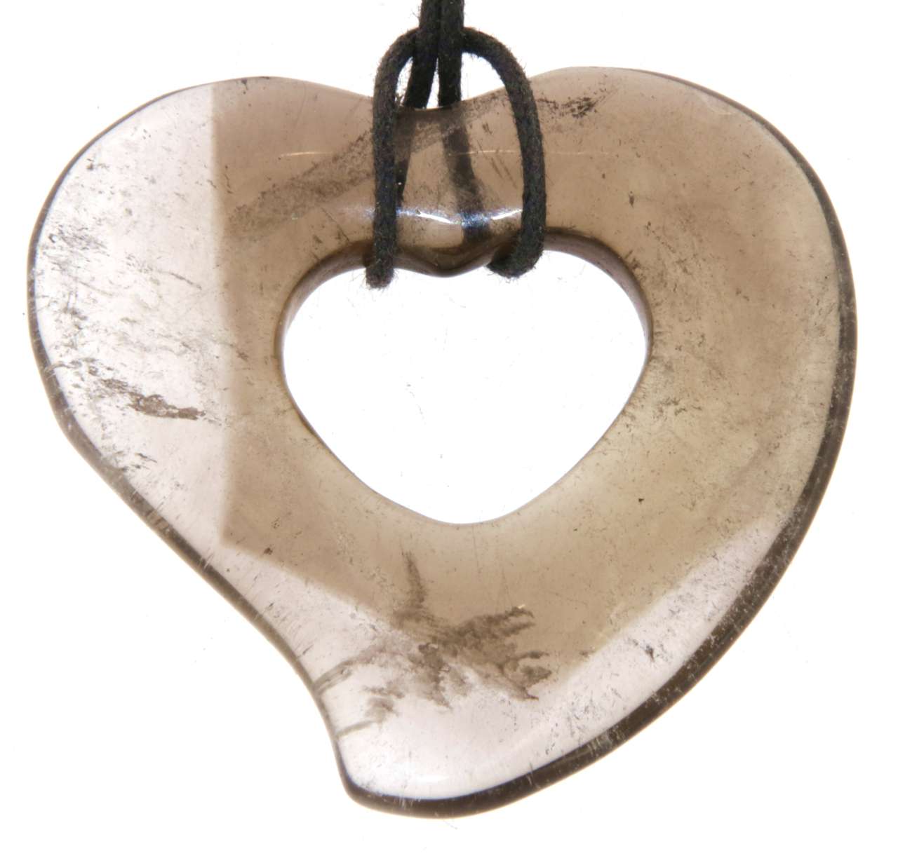 Edelstein Trommelstein Anhänger aus Rauchquarz Herz mit einem passenden Stoffband.