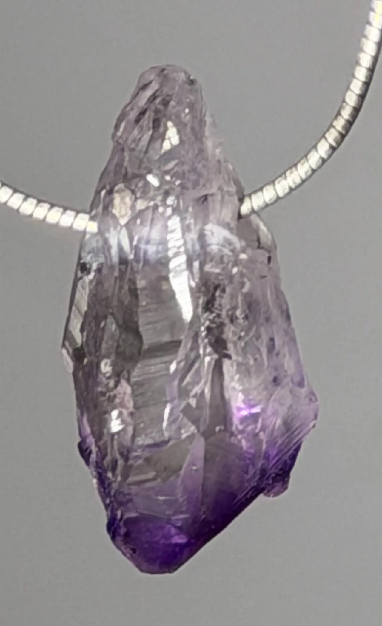 Ein wunderschöner Amethyst-Anhänger in Spitzenform aus Uruguay – naturbelassen, unbehandelt und von intensiver violetter Farbe.