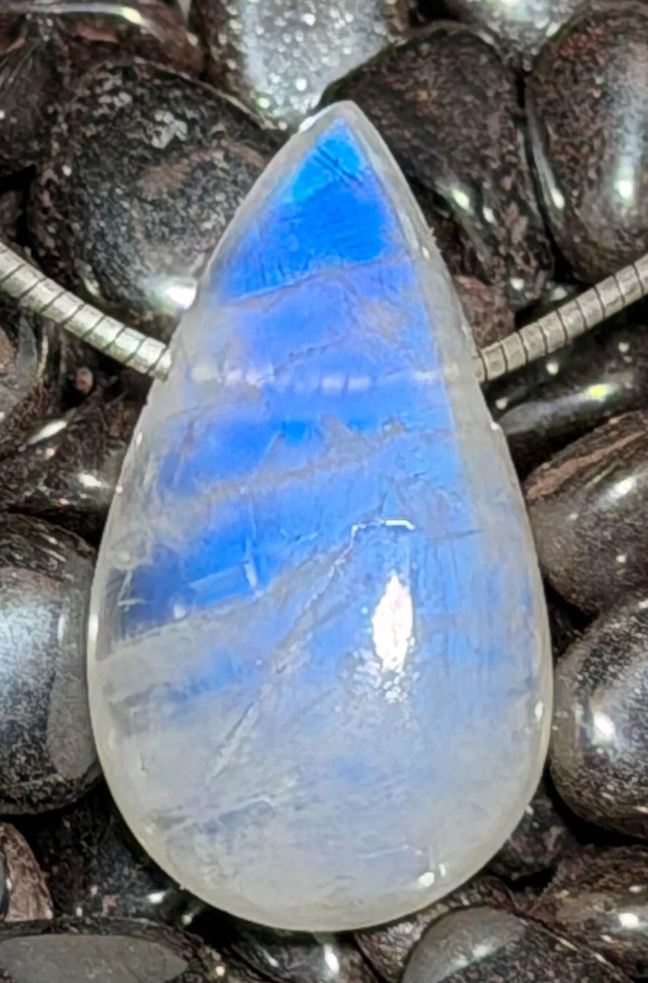 Du erhältst genau den abgebildeten Regenbogenmondstein Anhänger – ein einzigartiges Schmuckstück voller natürlicher Schönheit und lichtvoller Reflexe.