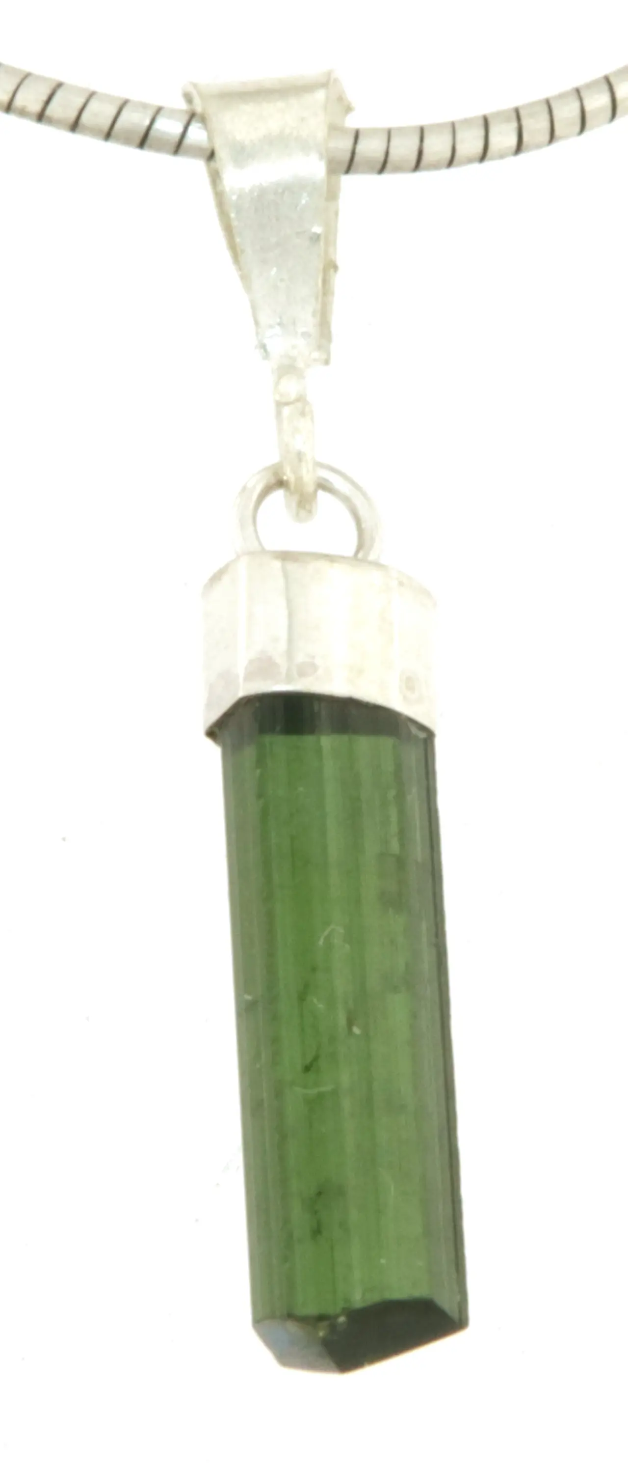 Edelstein-Trommelstein-Anhänger aus grüner Turmalin / Verdigolith