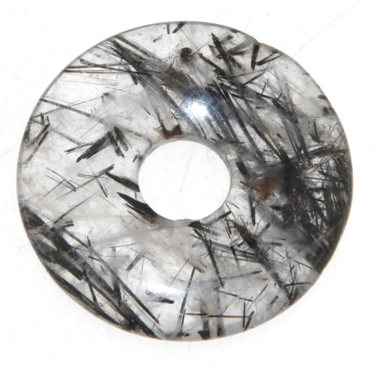 Die runde Donutform, auch Pi-Scheibe genannt, steht symbolisch für Harmonie, Vollkommenheit und den Kreislauf des Lebens. In Kombination mit der schützenden und klärenden Energie des Turmalinquarzes entsteht ein stilvoller Edelsteinanhänger, der innere Balance, Stärke und Klarheit fördert.